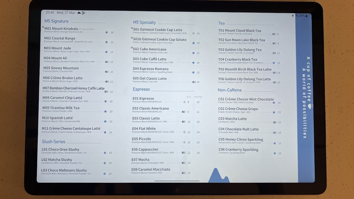 M5 Coffee - TTDI Menu